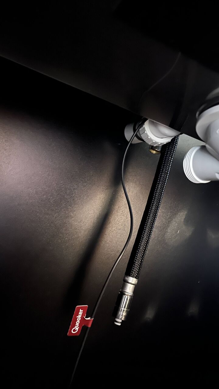 Container, stålbordplade, tv og opvasker