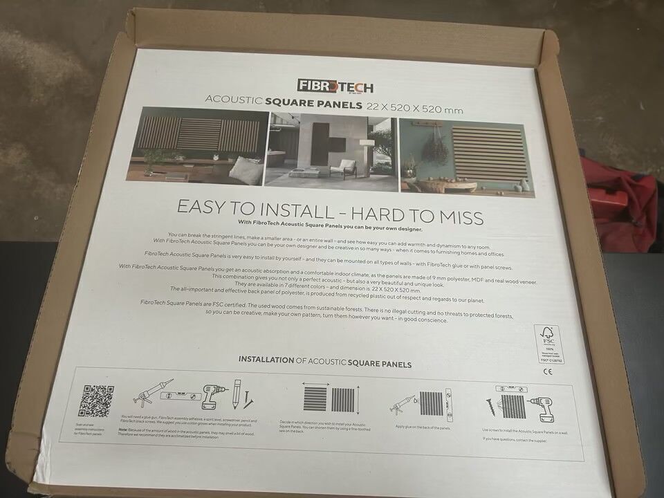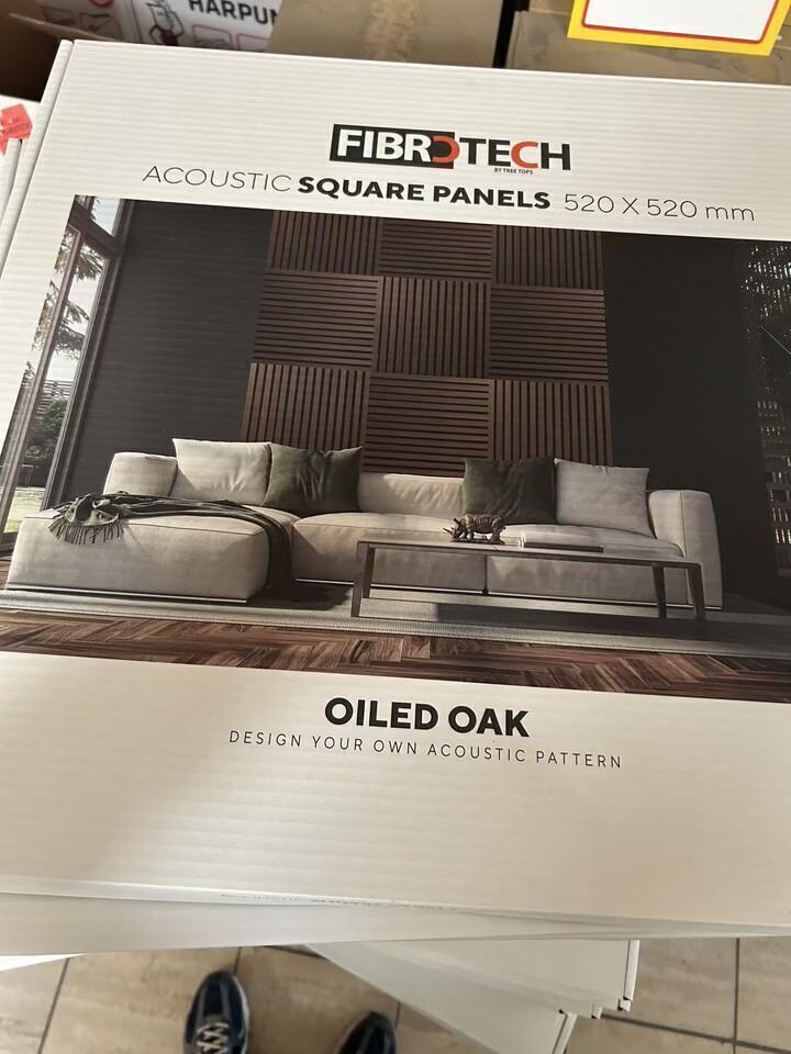 Byggematerialer, Gulv, Akustik auktion, akustikpaneler, akustikfliser, skruer mm. i forskellige størrelser