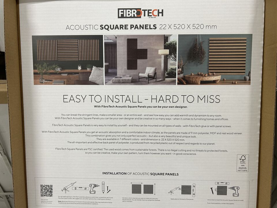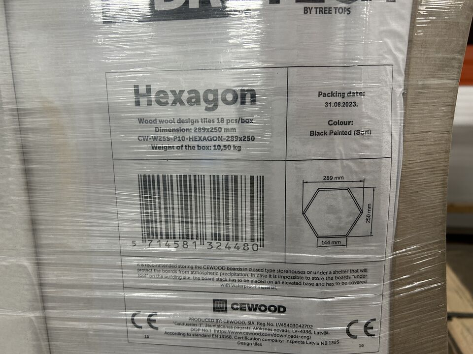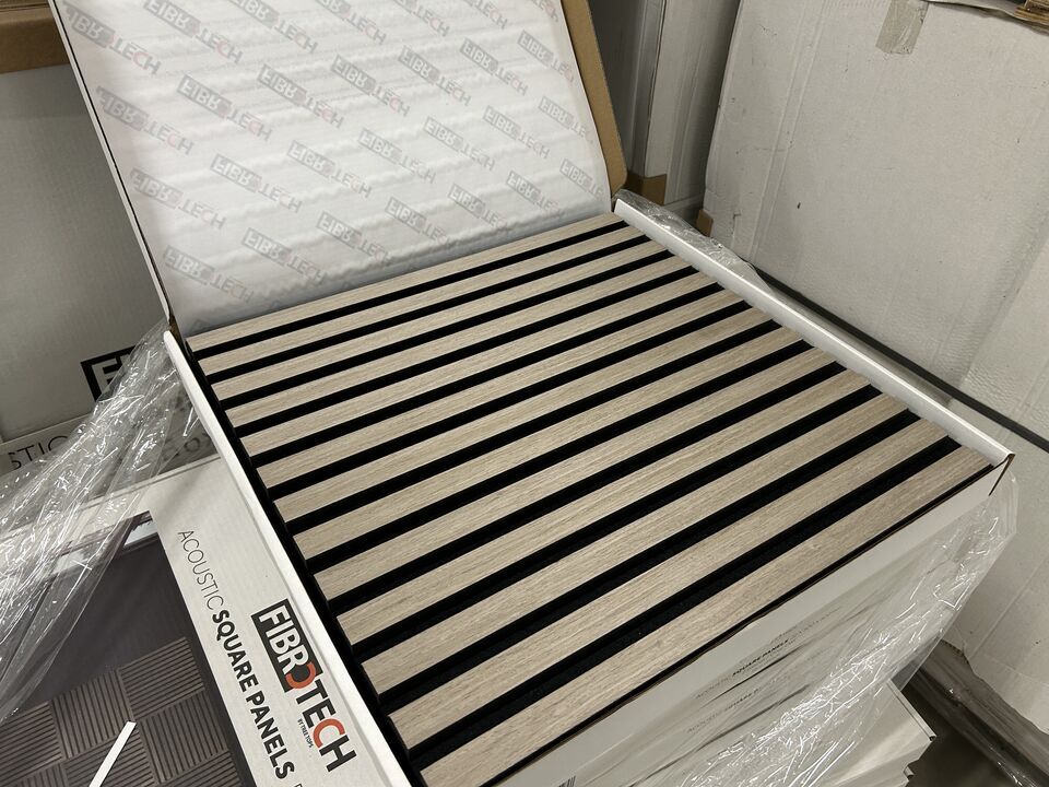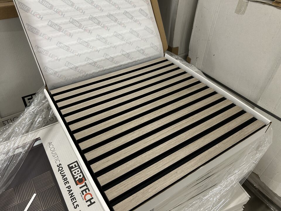Byggematerialer, Gulv, Akustik auktion, akustikpaneler, akustikfliser, skruer mm. i forskellige størrelser