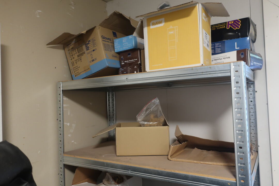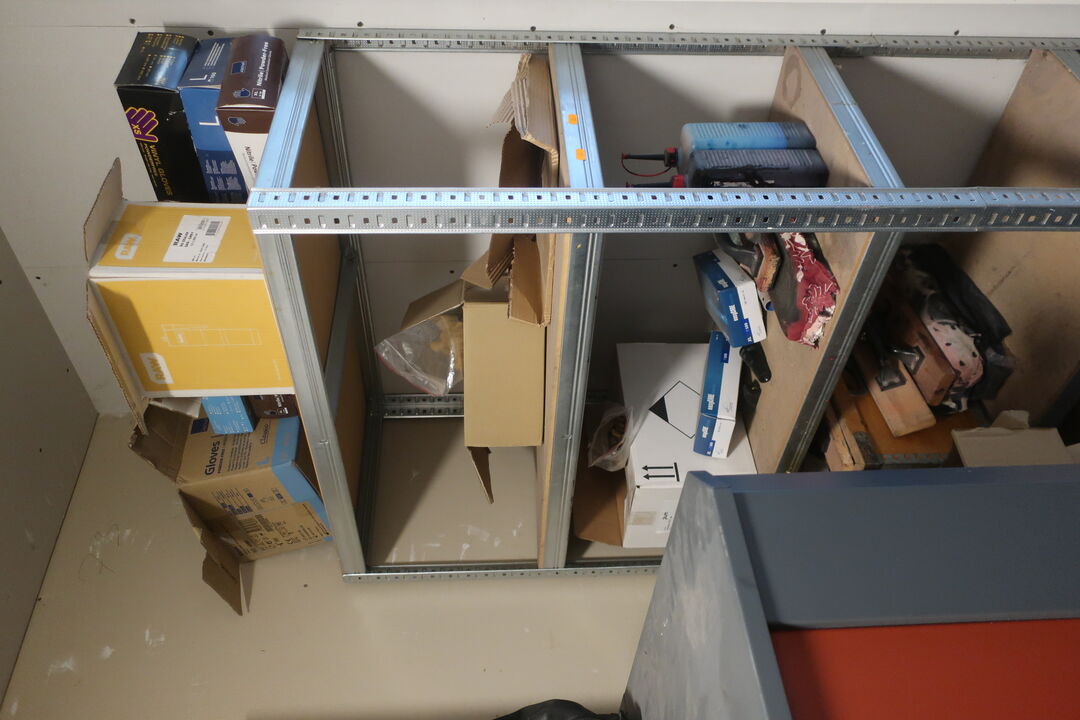 A8059 L25 - Reol med div. Værktøj, engangshandsker m.m.