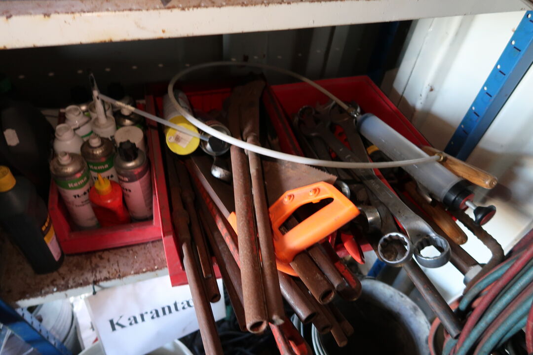 A8710 L1030 - 2 fag lagerreoler med div. Værktøj og varelager