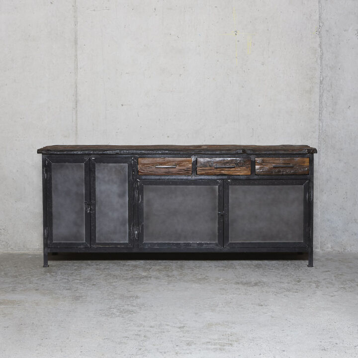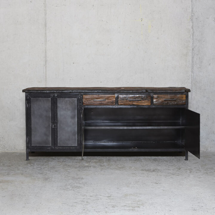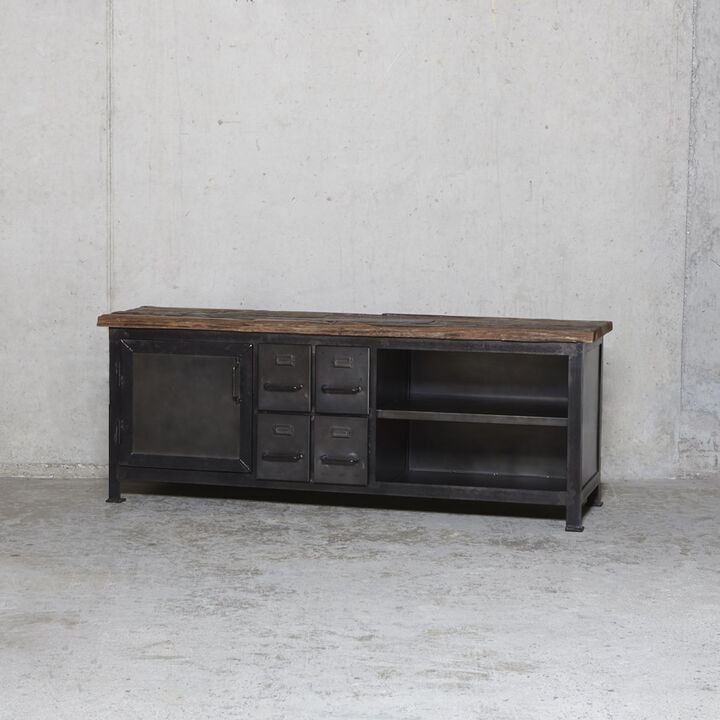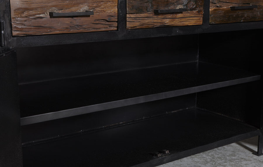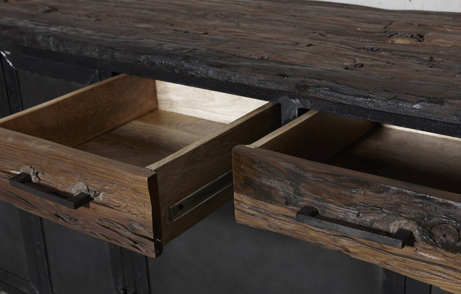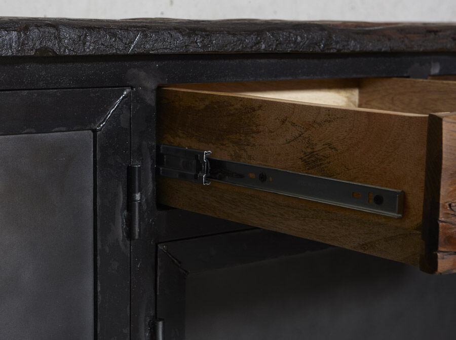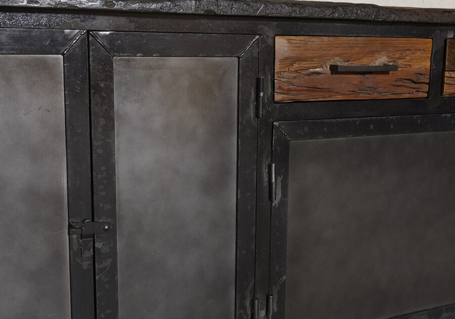 Flot industrielt skænk i mørk oxideret jern.