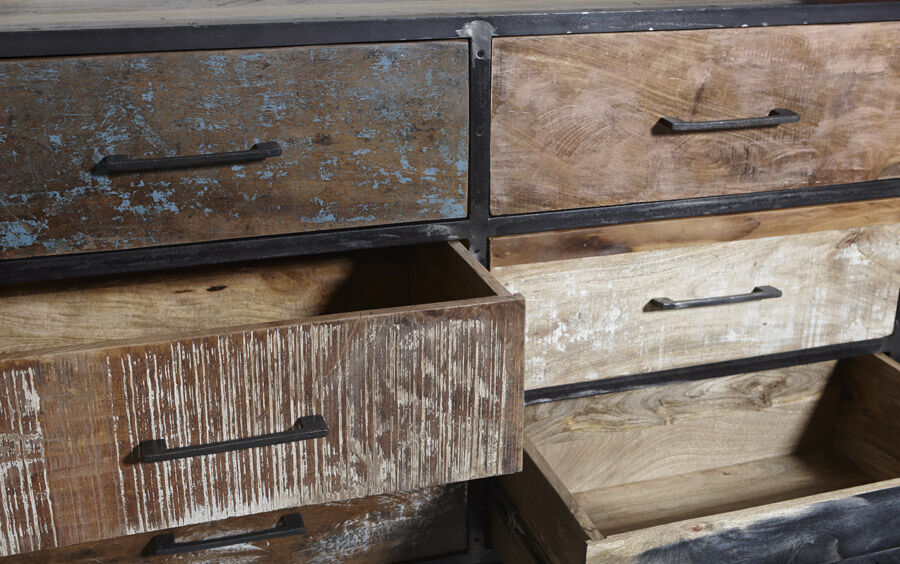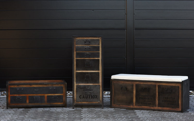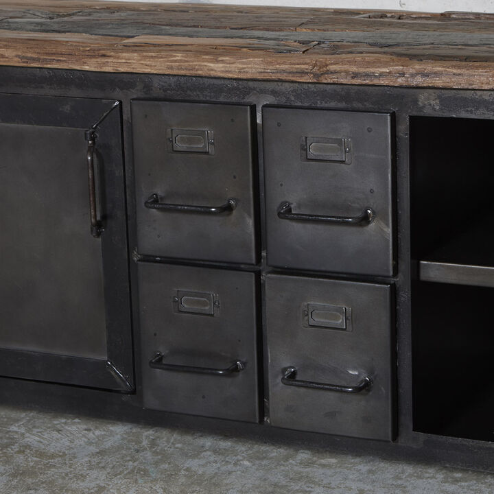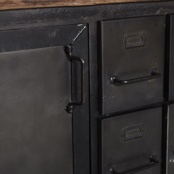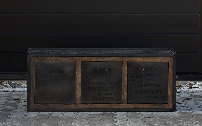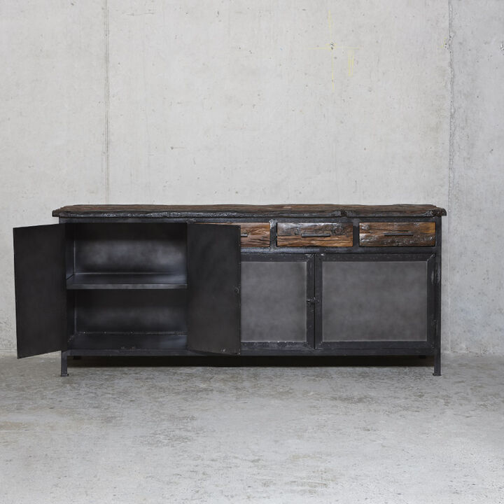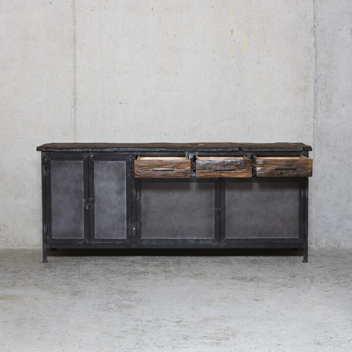 Flot industrielt skænk i mørk oxideret jern.
