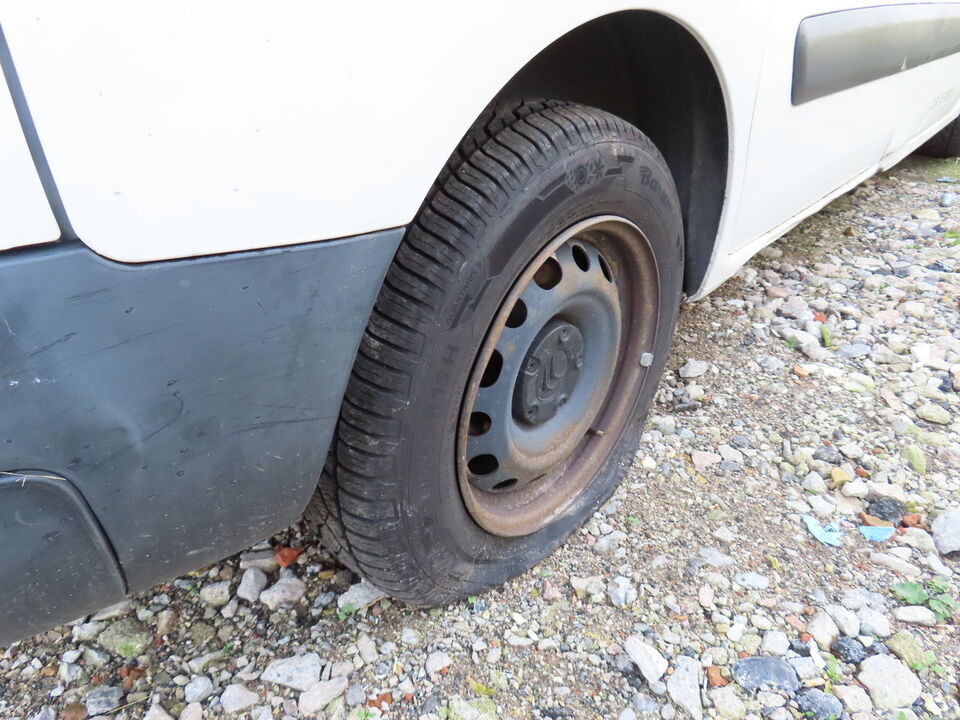 Bemærk: Bilen kan ikke starte (ingen strøm), og h. baghjul er fladt