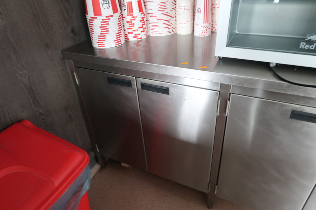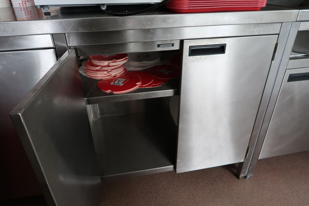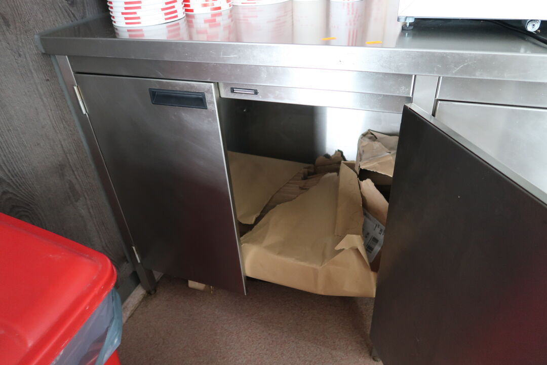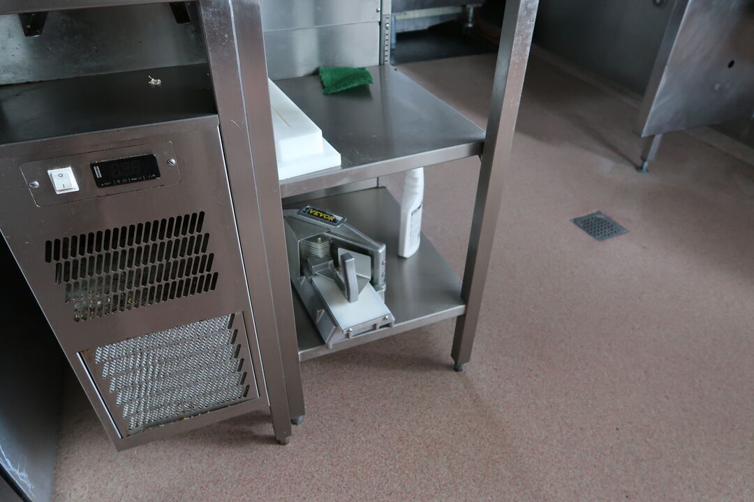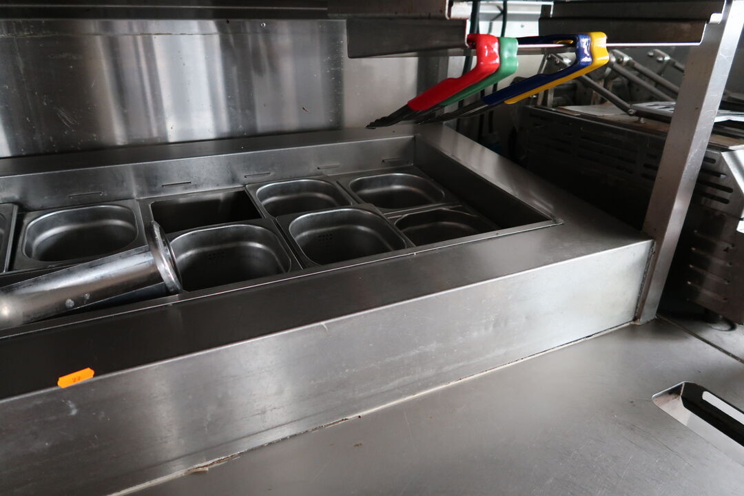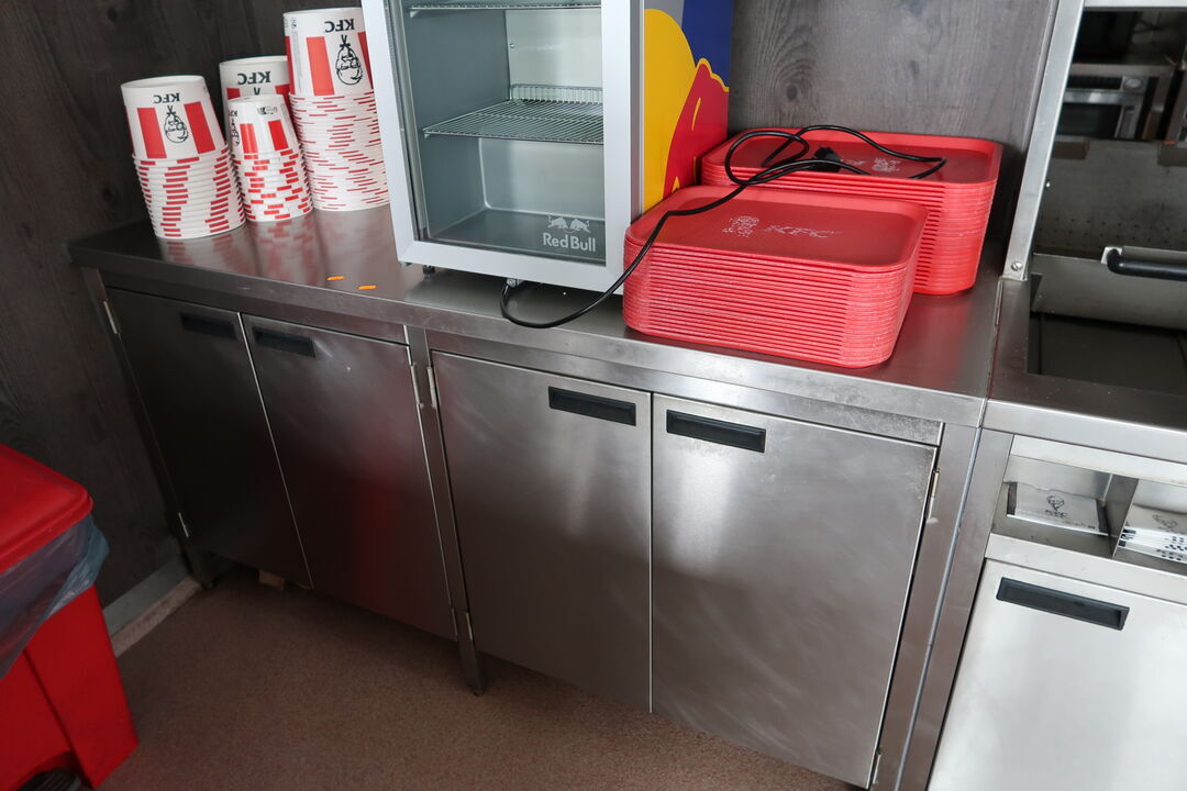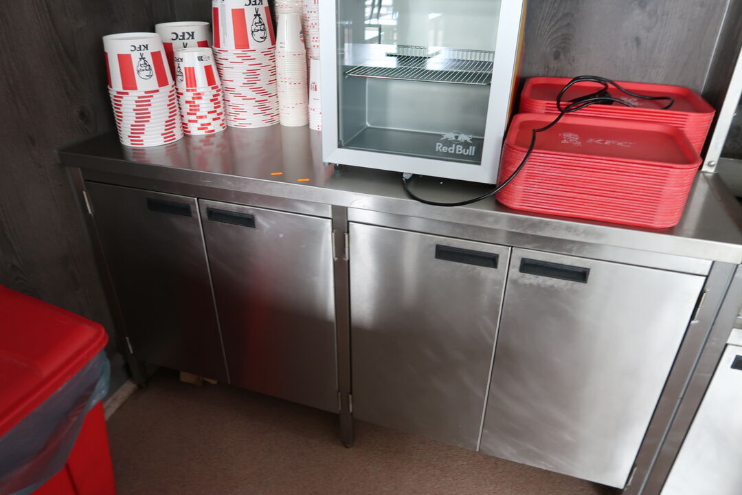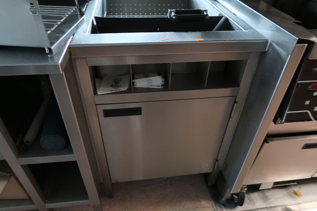 Rustfri stålbord med indhold uden køleskab