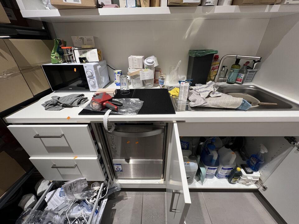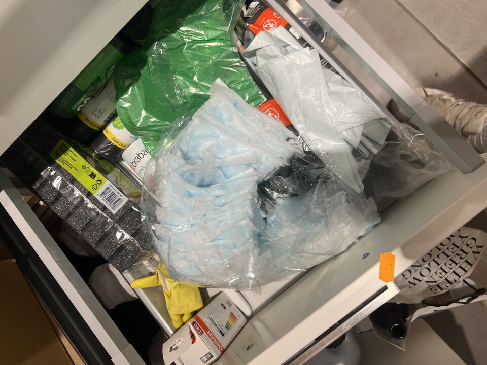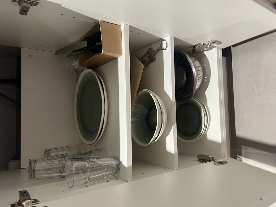 Indhold i skuffer og skabe inkl. mikroovn