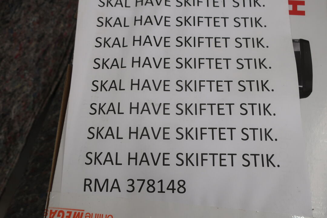 Dokumentationen skal være os i hænde senest 14 dage efter sidste afhentningsdag. Såfremt den fremsendte dokumentation er tilstrækkelig efter SKATS regler, vil vi udstede en kreditnota, samt en ny faktura uden moms og herefter overføre momsen til køber, fraregnet et ekspeditionsgebyr på kr. 350,-.