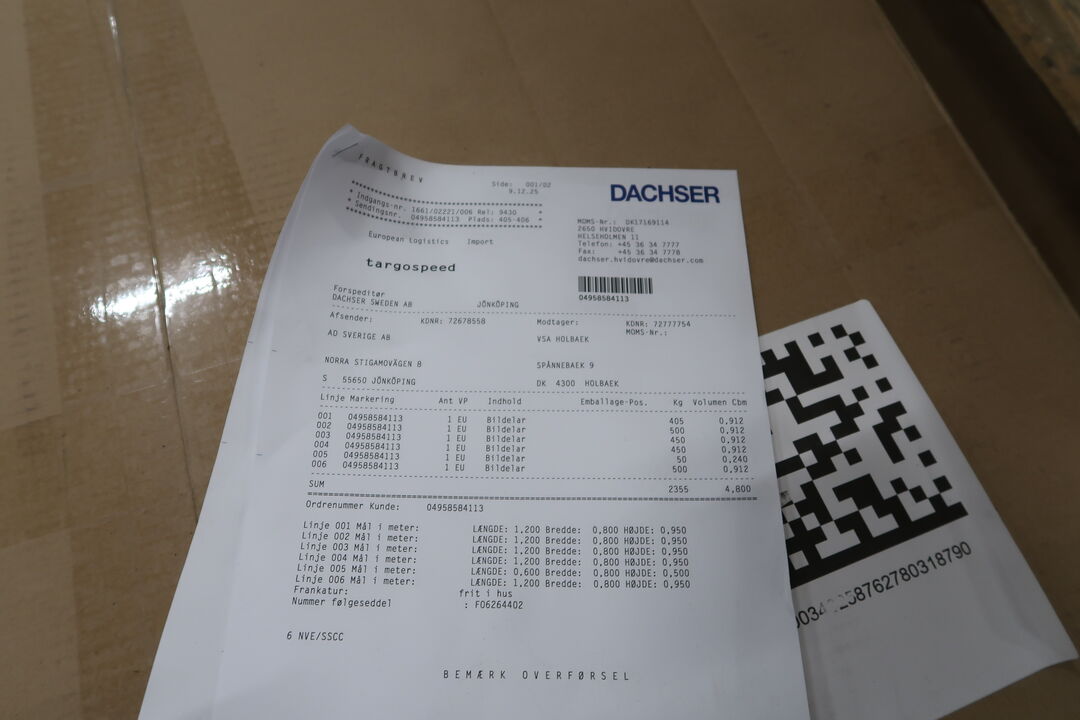 at varen er sendt eller transporteret fra Danmark, varens bestemmelsessted, transportmiddel og registreringsnummer på transportmiddel og, at varen er modtaget på leveringsadressen.