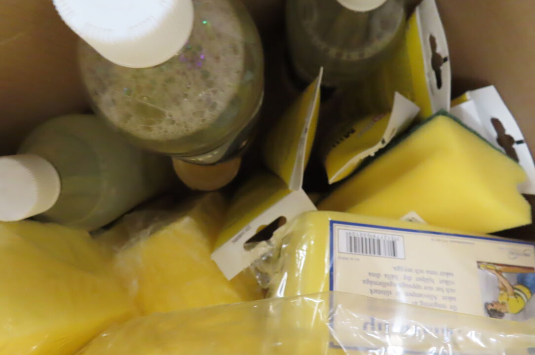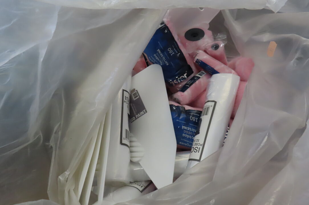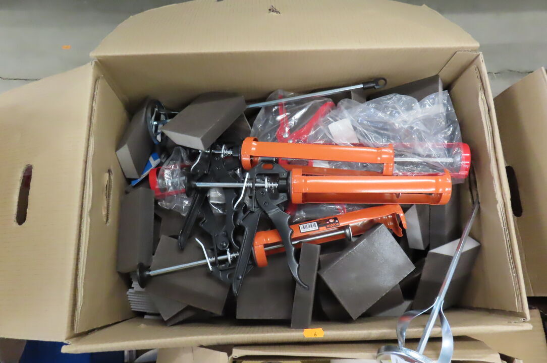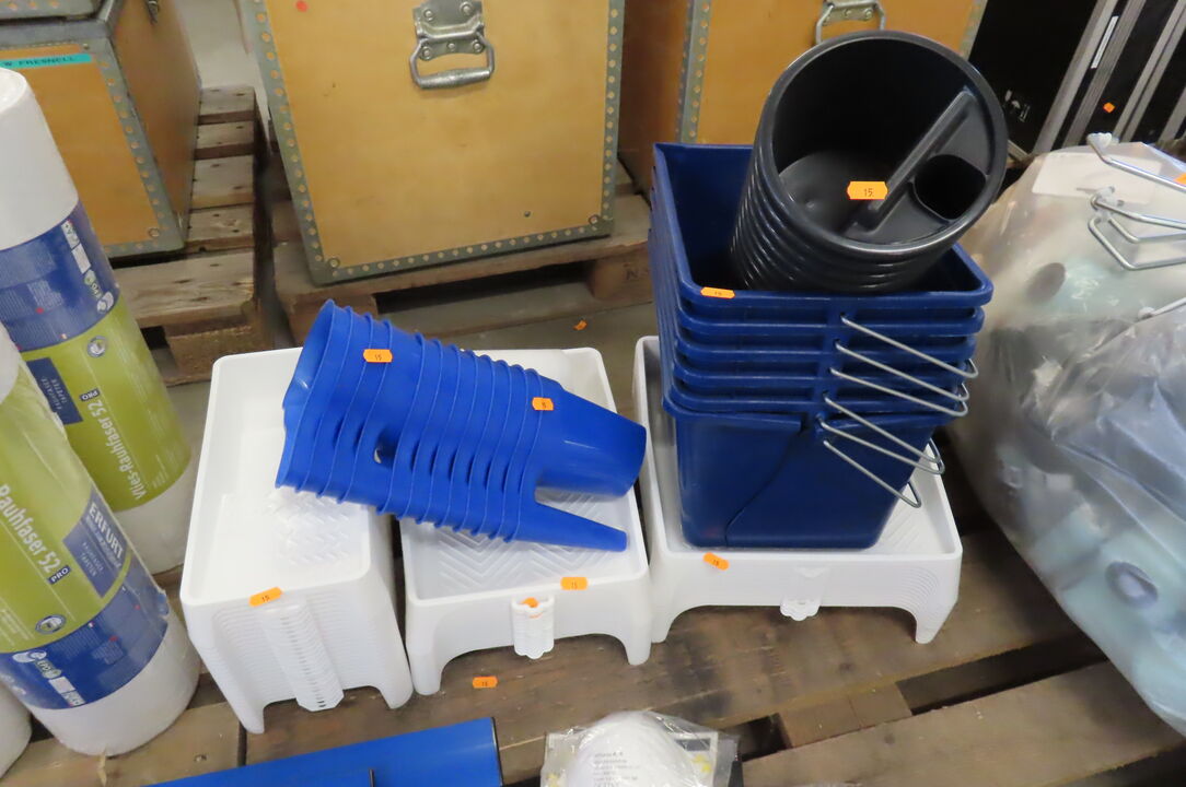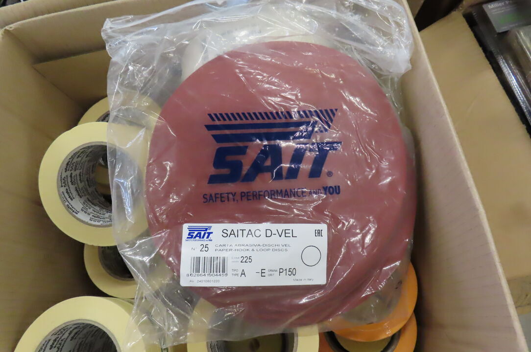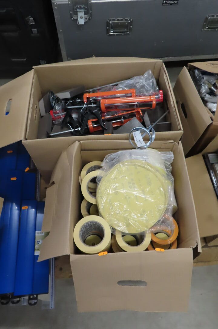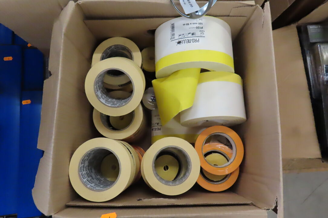 2 stk. Kasser med malertape, slibesvampe mm.