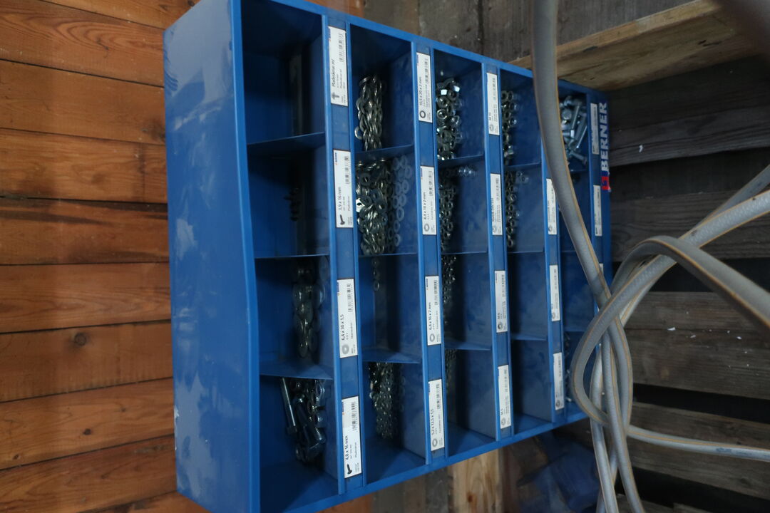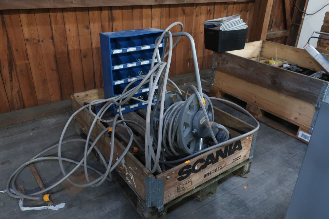 A8066 L23 - Slangevogn, reol med indhold samt skruetvinge