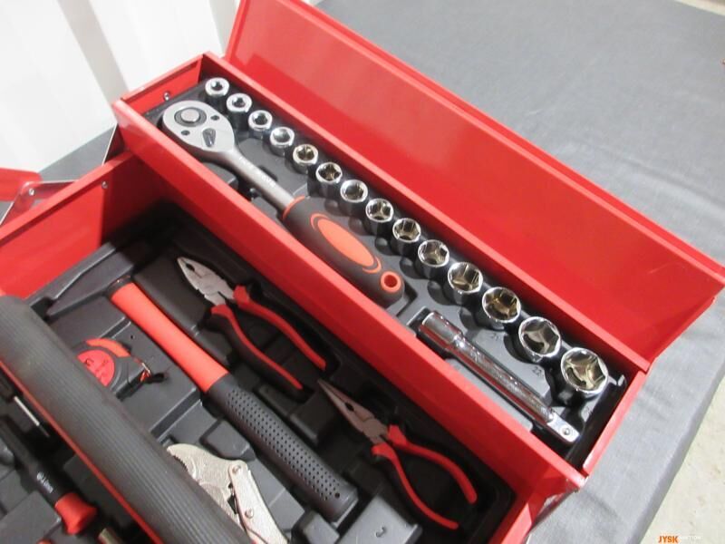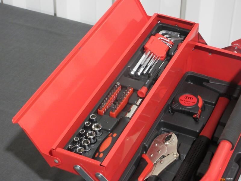A6791 L14 - Rød værktøjskasse i metal Med ca. 66 dele værktøj.