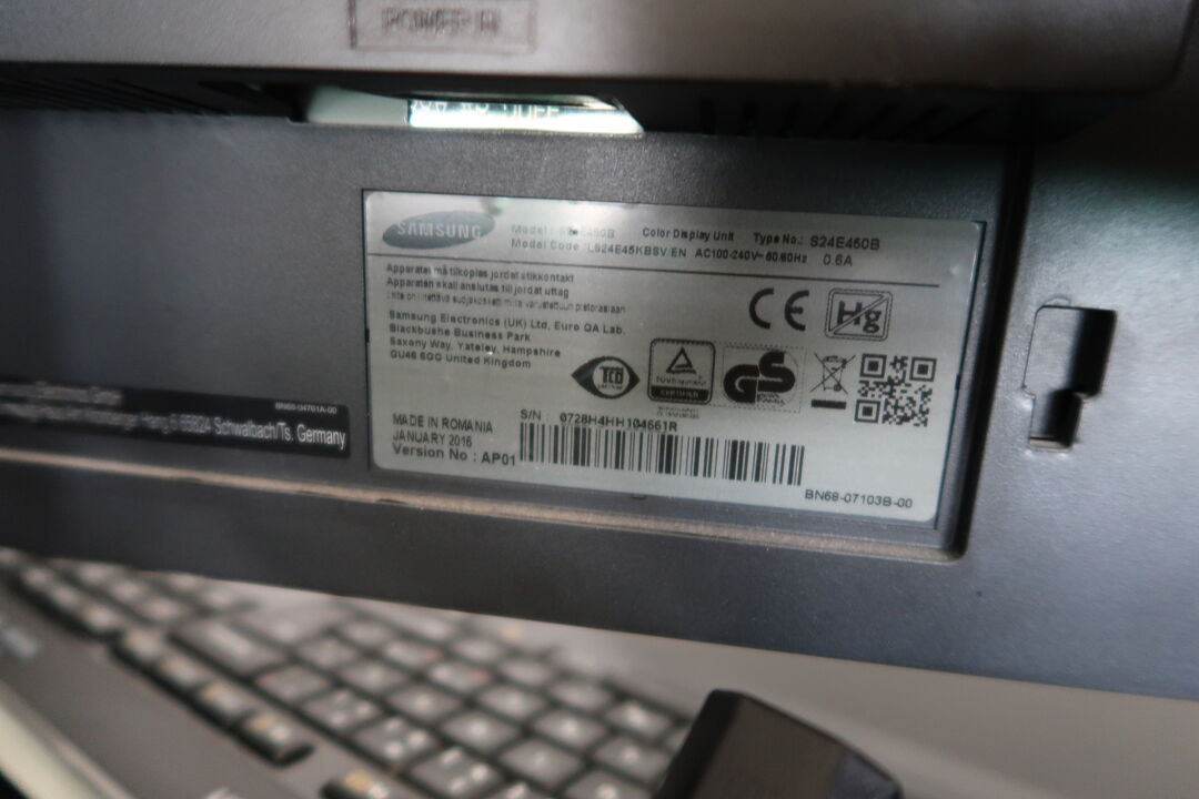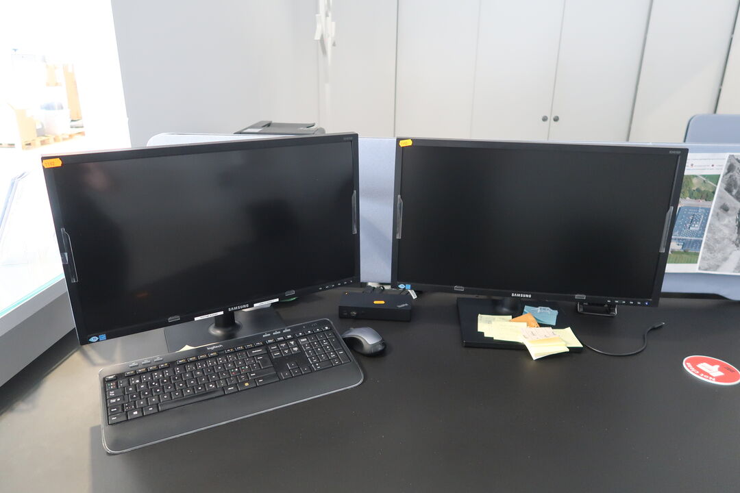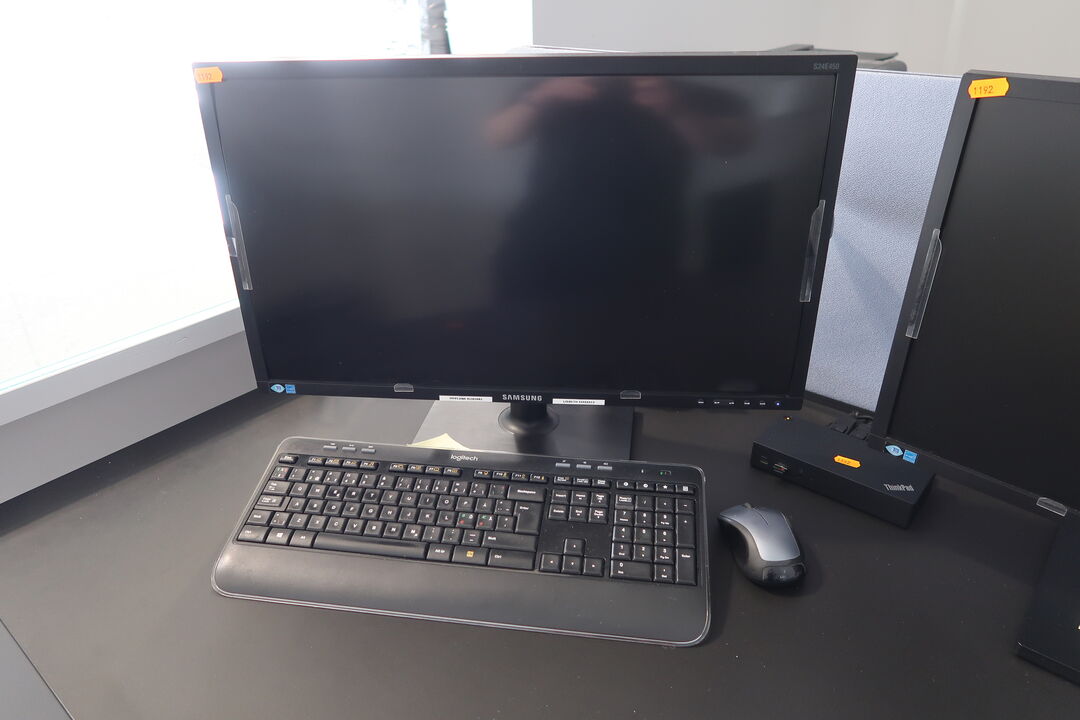 A8552 L1192 - 2 stk. computerskærme SAMSUNG S24E450, dockingstation LENOVO Thinkpad, tastatur, mus