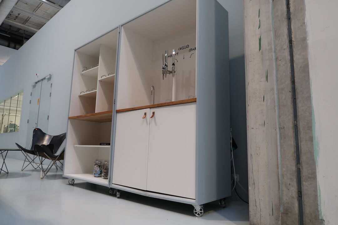 A8552 L1219 - 2 stk. sammenfoldelige køkkenmoduler på hjul, med vanddispenser, tappehaner m.m.