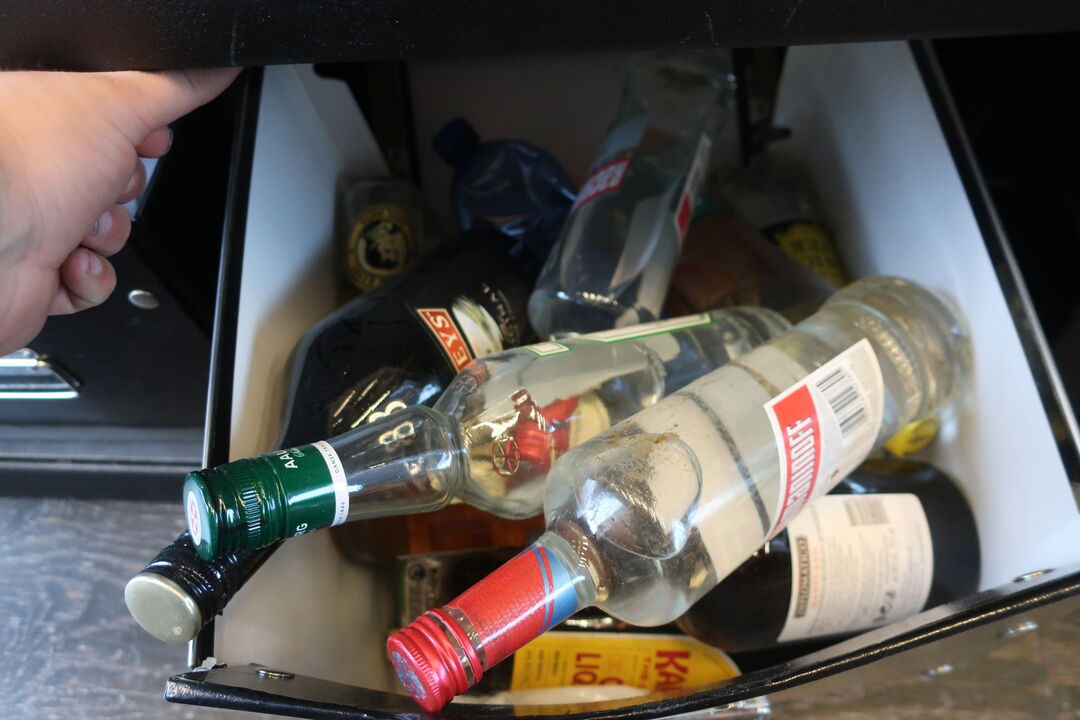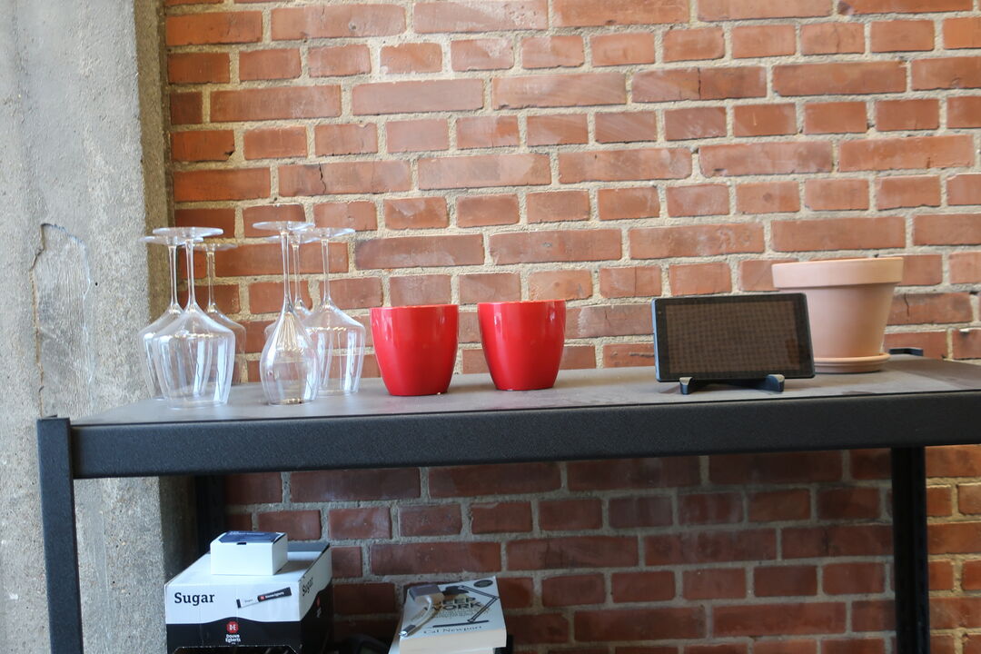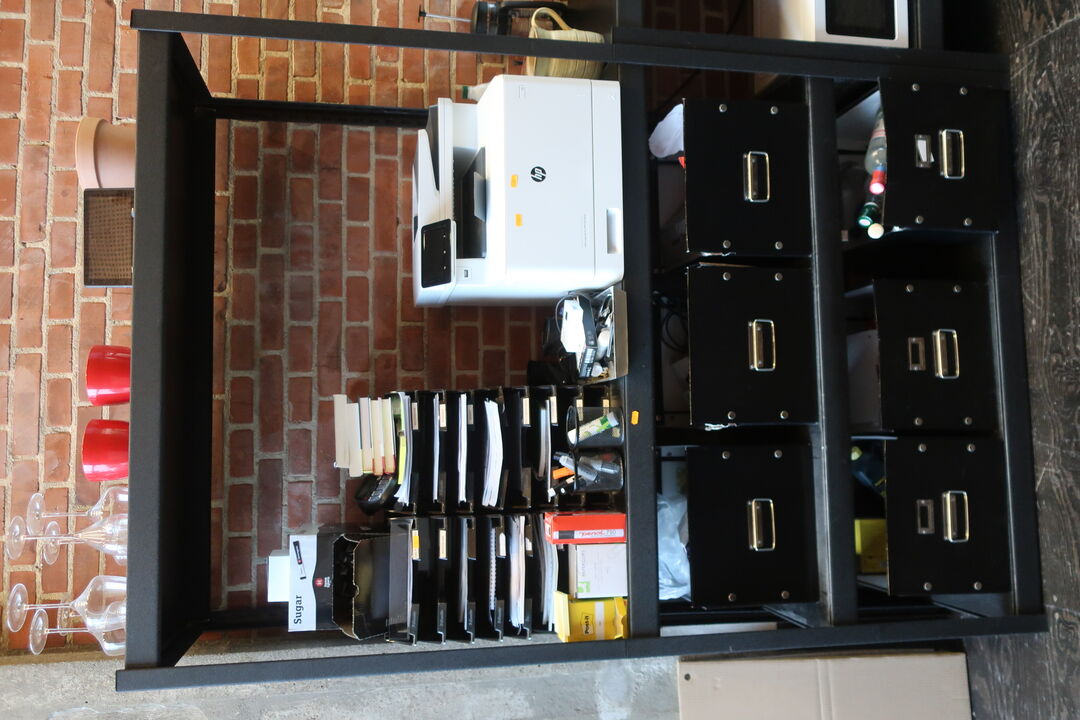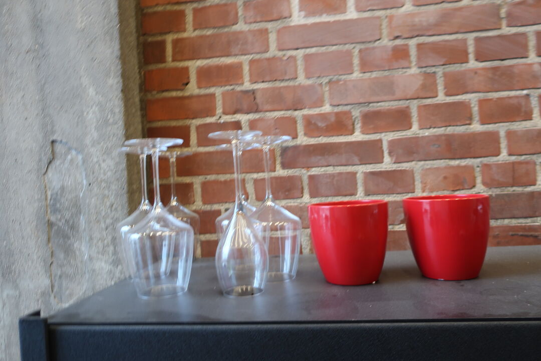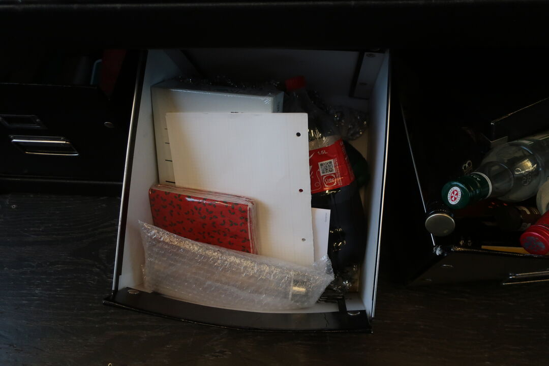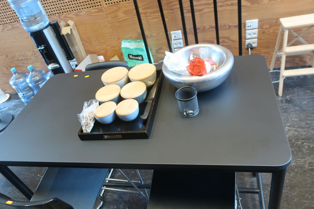 Højbord inkl. 4 barstole og indhold på bord