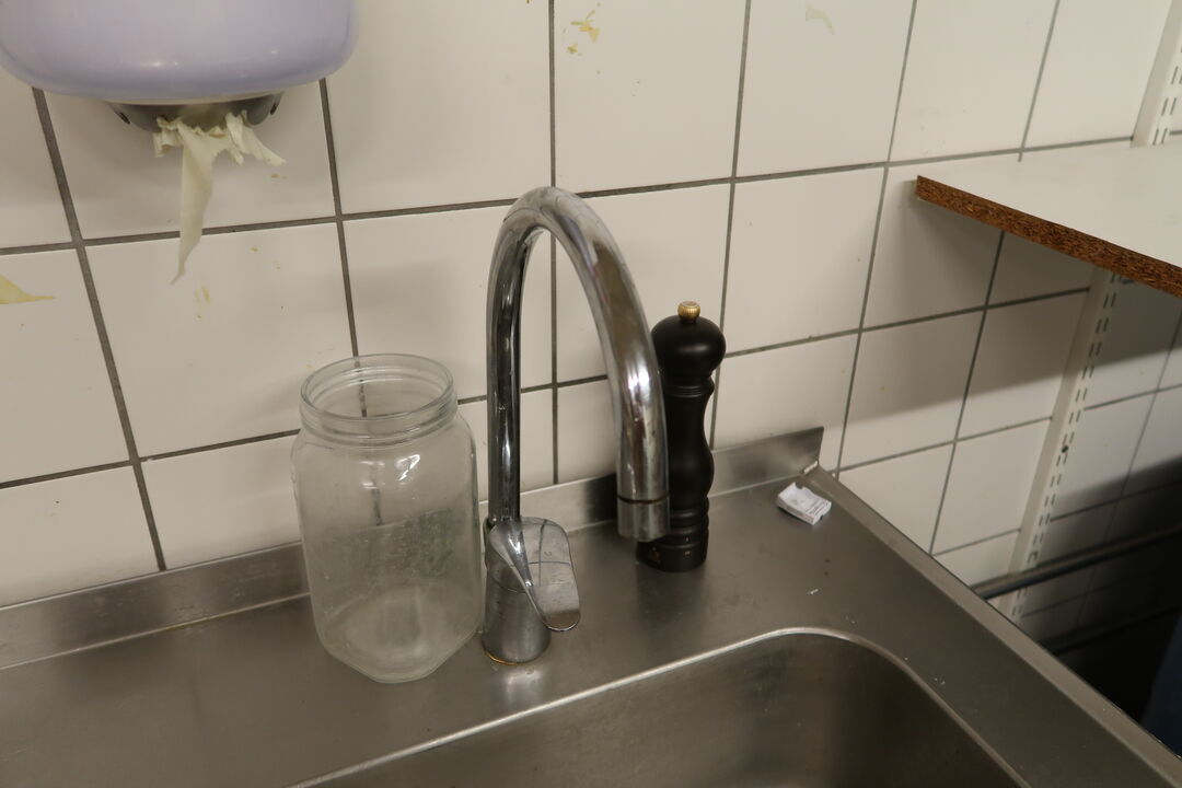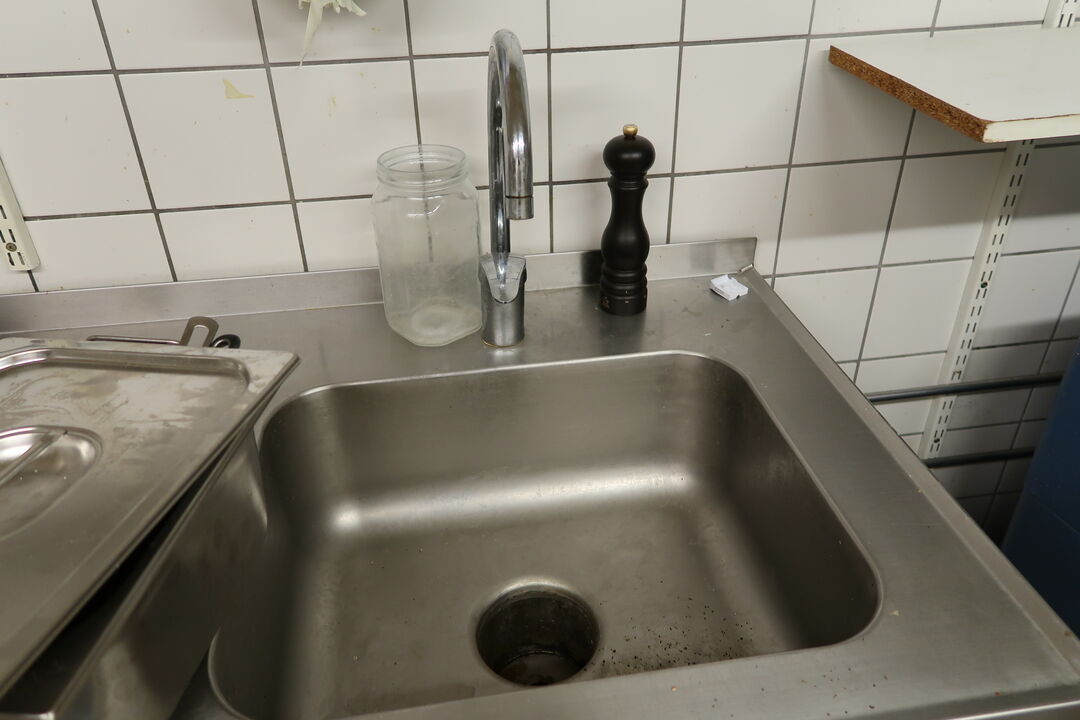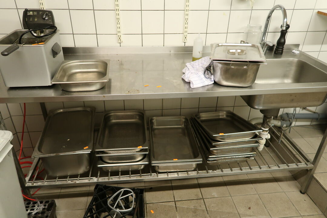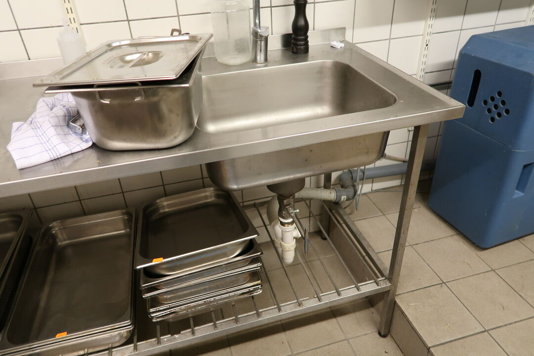 Rustfri stålbord med vask og armatur