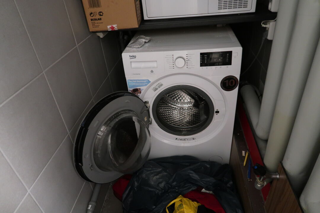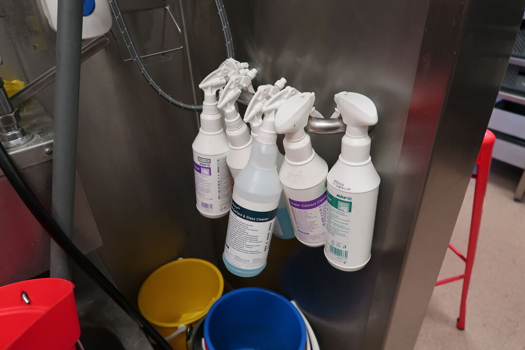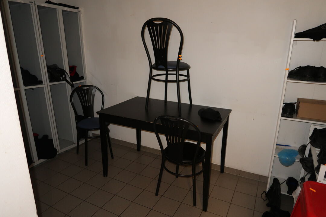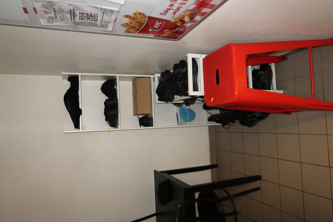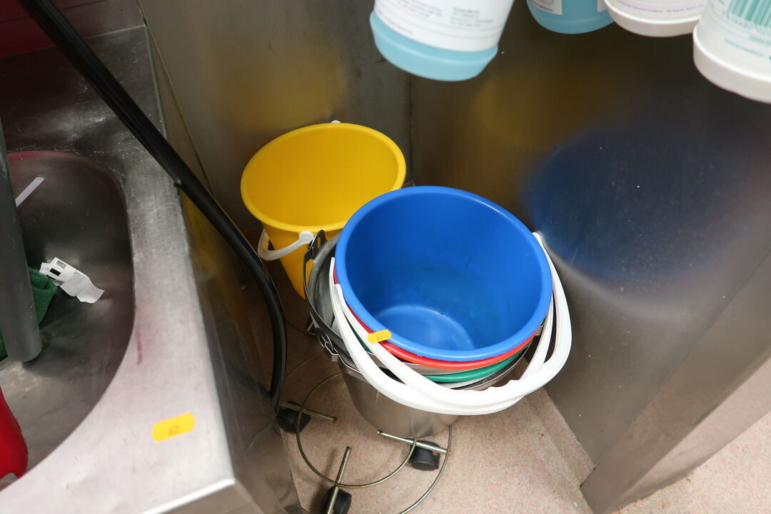 Barstol, skraldespand samt spand