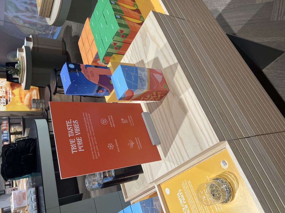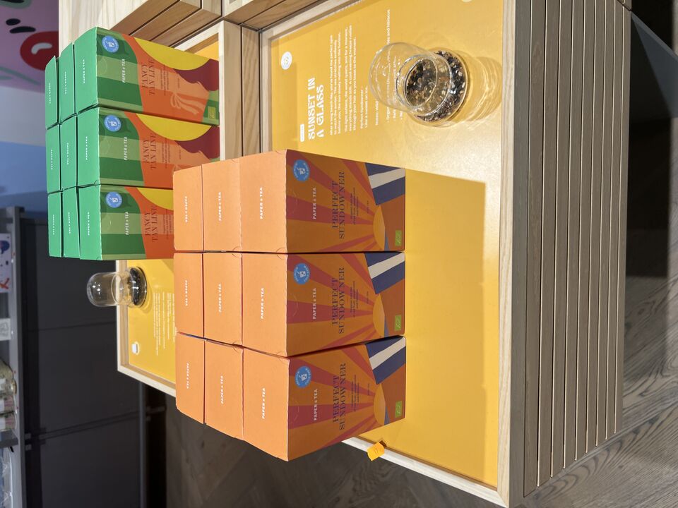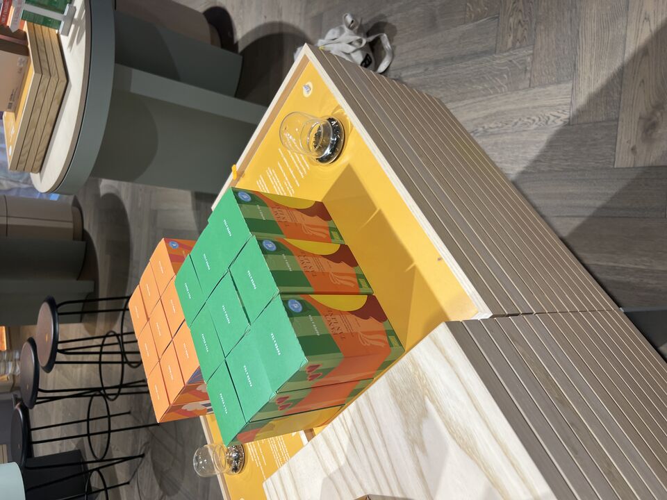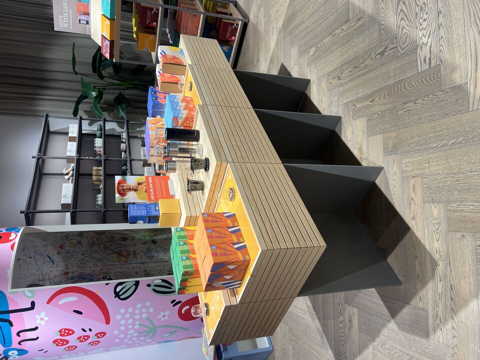 Displaystand m. løse plader inkl. indhold